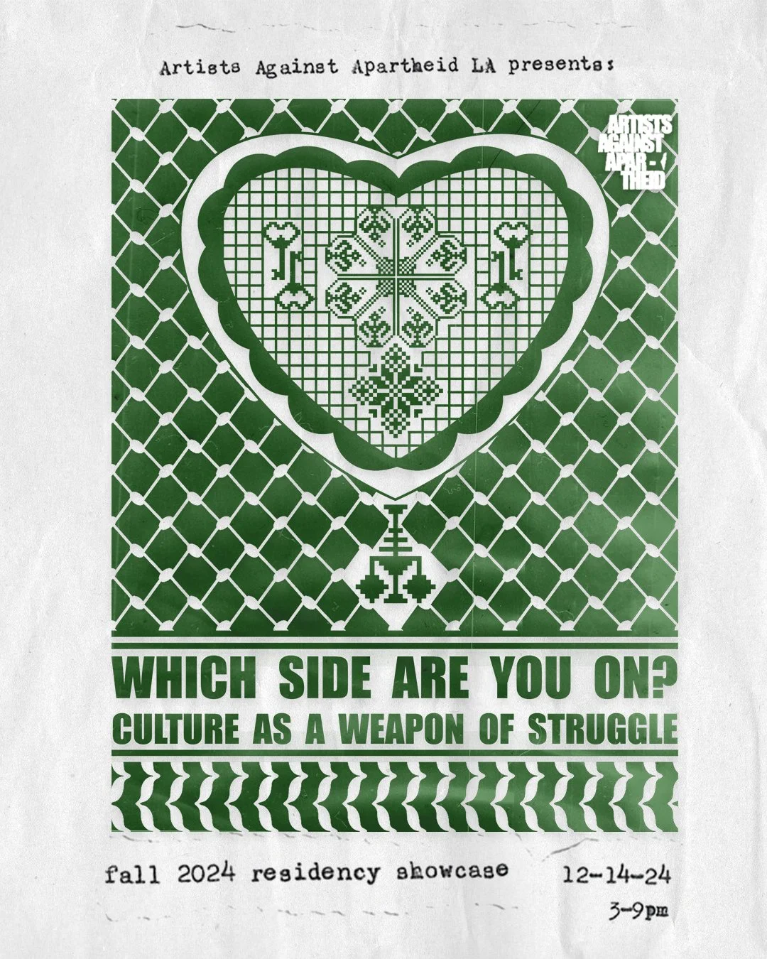 Join us for an interactive night of art, performance, and community for a showcase of the pieces and performances developed by more than 30 artist residents from our Los Angeles Fall 2024 Collective Residency. Foods and goods will also be sold by pro-Palestinian vendors and organizations.